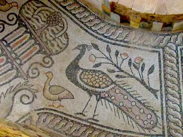 Fresk z III w. przedstawia Chrystusa ogłaszającego swe prawo. Najbliżej Niego umieszczone są cztery igrające delfiny, które przy ich żywotności i rzutkości może najwięcej potrzebują moralnego powściągu, czego uczy prawo Boże, potem idą ruchliwe, ale lękliwe gazele, a najdalej są ciche i spokojne gołębie.