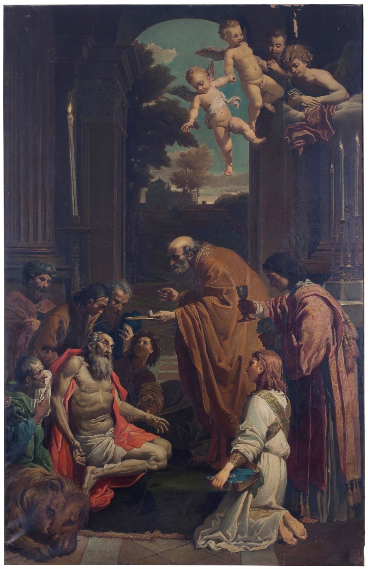 Skutki Komunii św. jako skutki życia z Chrystusem i powolnej chrystyfikacji przedstawia obraz Domenichina (1581—1641) Ostatnia Komunia świętego Hieronima.
